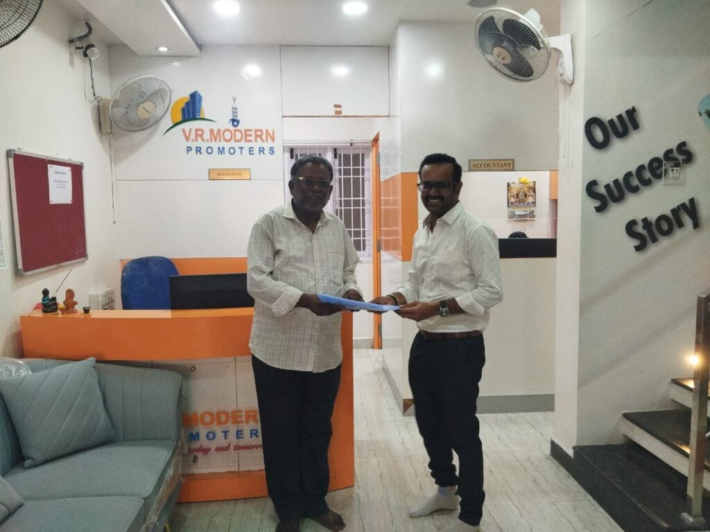 We would like to place on record that our heart felt experiences in dealing with M/s. VR Modern Promoters for making our Dream Home.